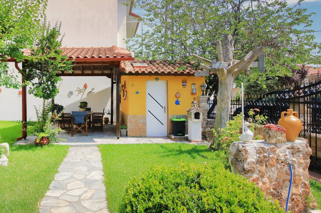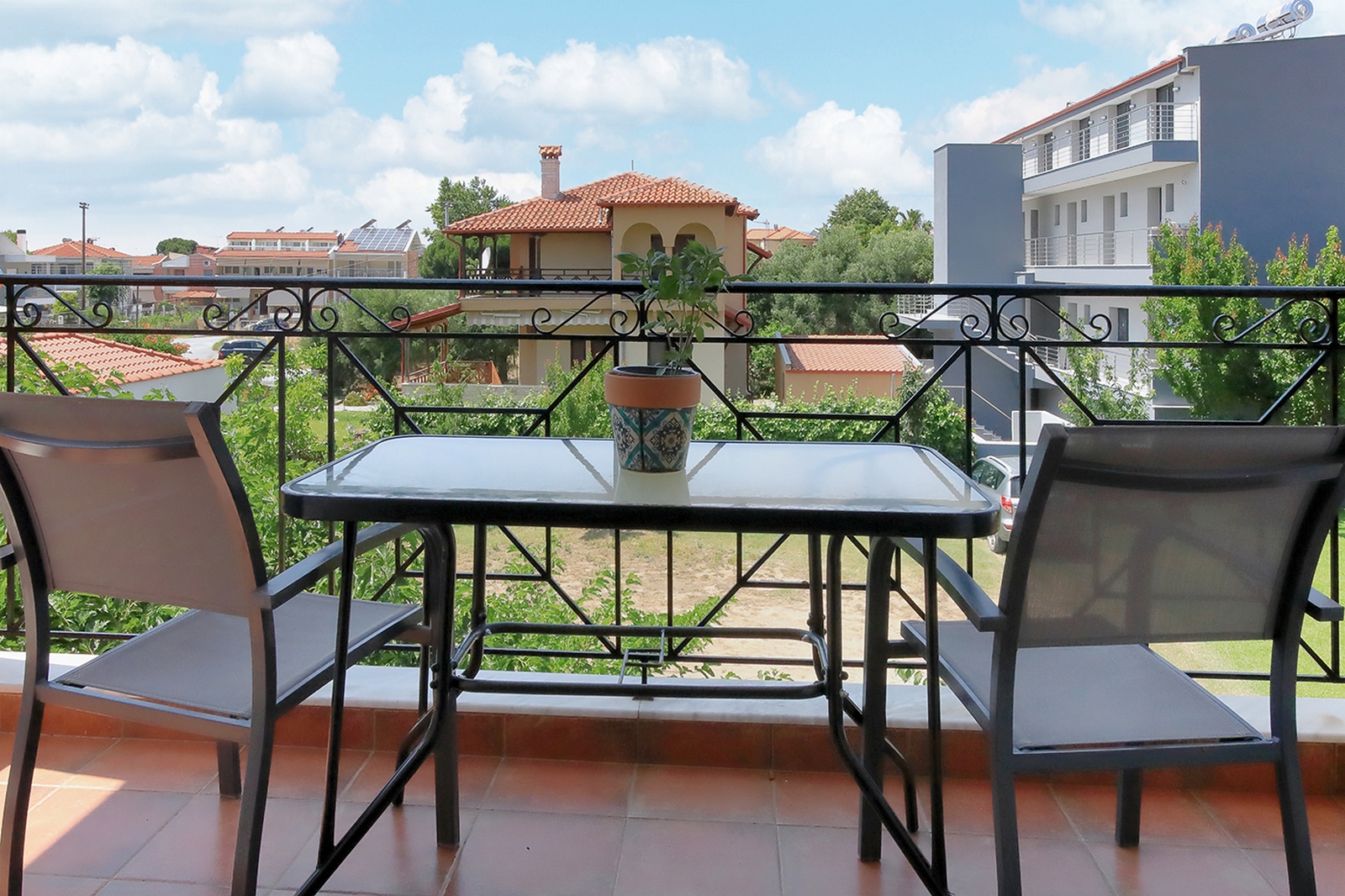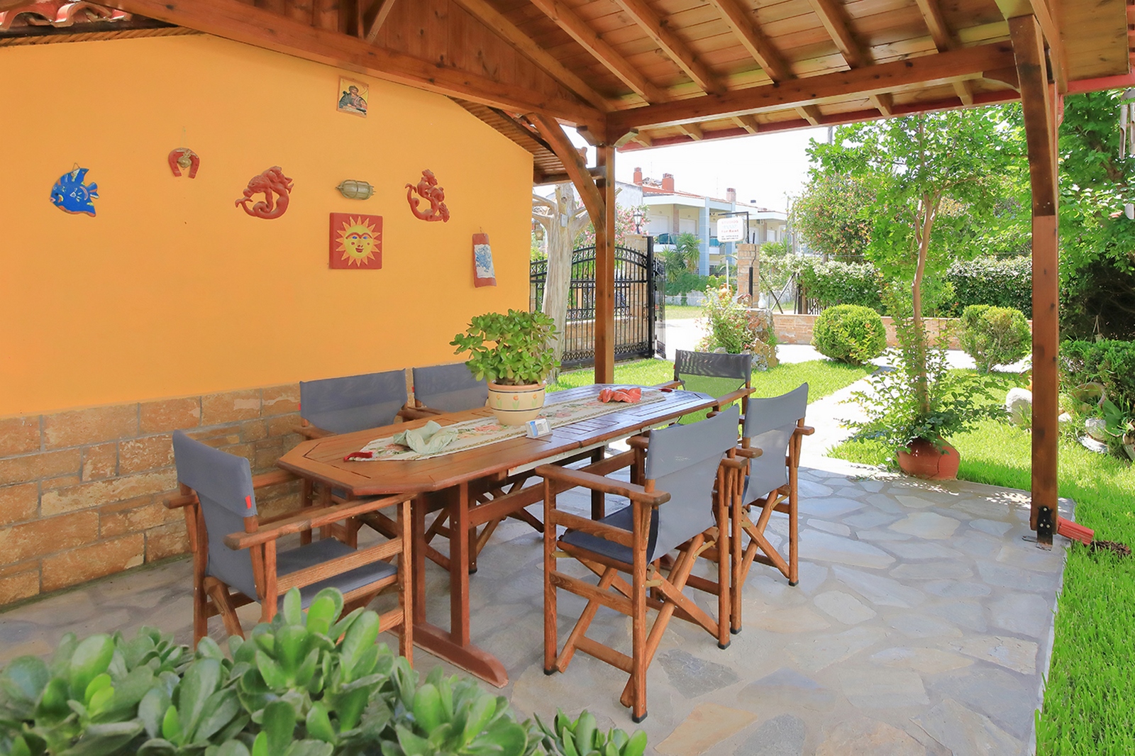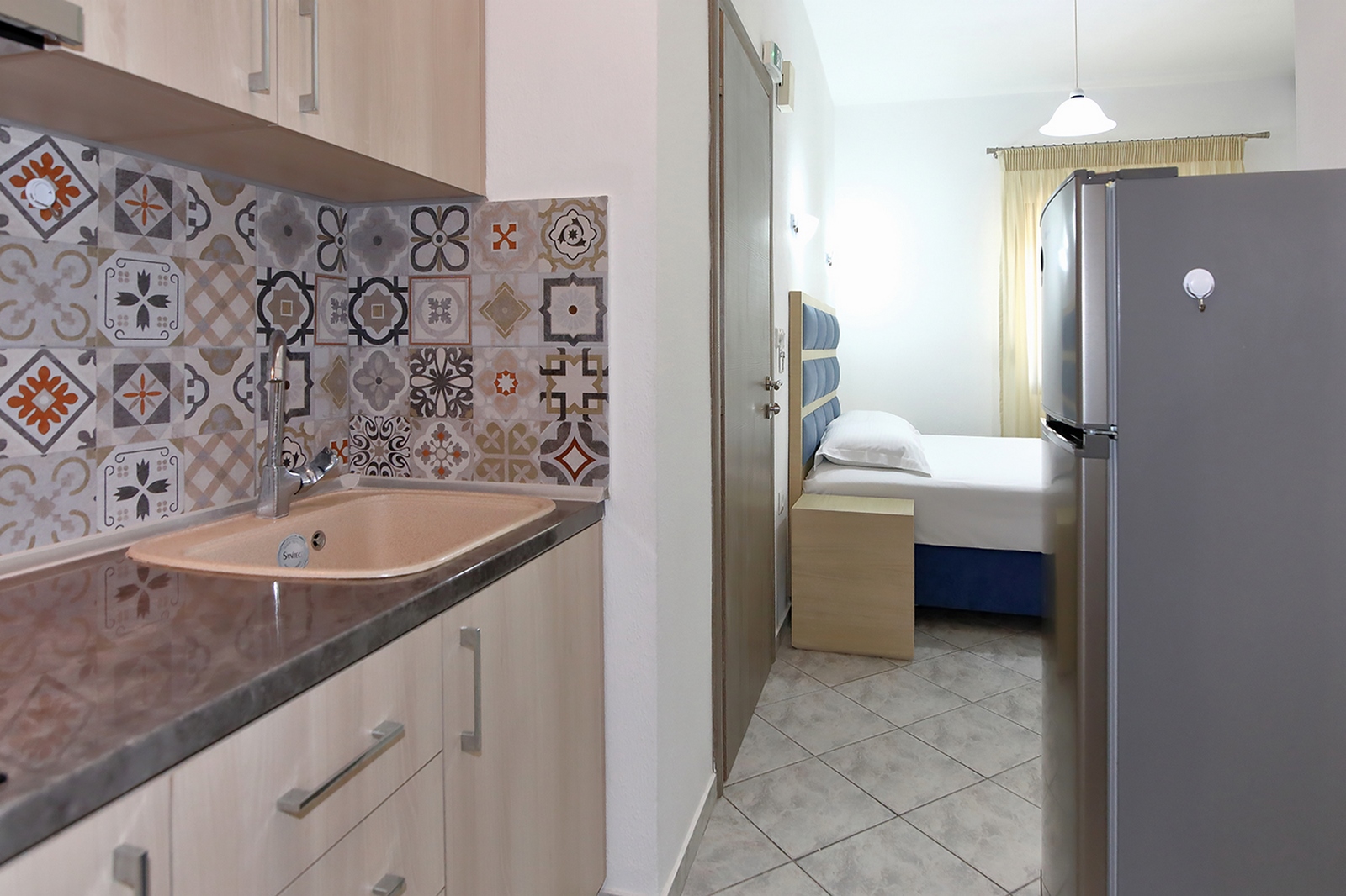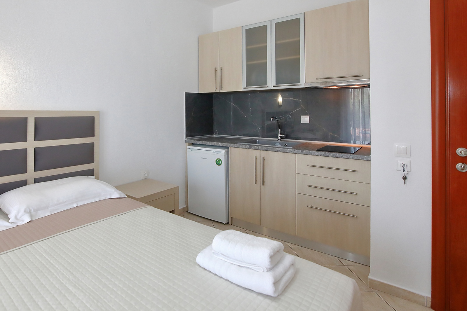 The modern complex “STUDIOS ANNIO” is located near the tourist center of Nikiti, 100 meters from the sandy beach. Surrounded by a beautiful garden with lawn, flowers, trees, a gazebo with barbecue and private parking. It has 8 studios and 1 two-room apartment that can accommodate up to 4 people and there is the possibility of extra bed upon request. All of our apartments are decorated with modern stylish furniture and fully equipped to ensure a comfortable stay.
