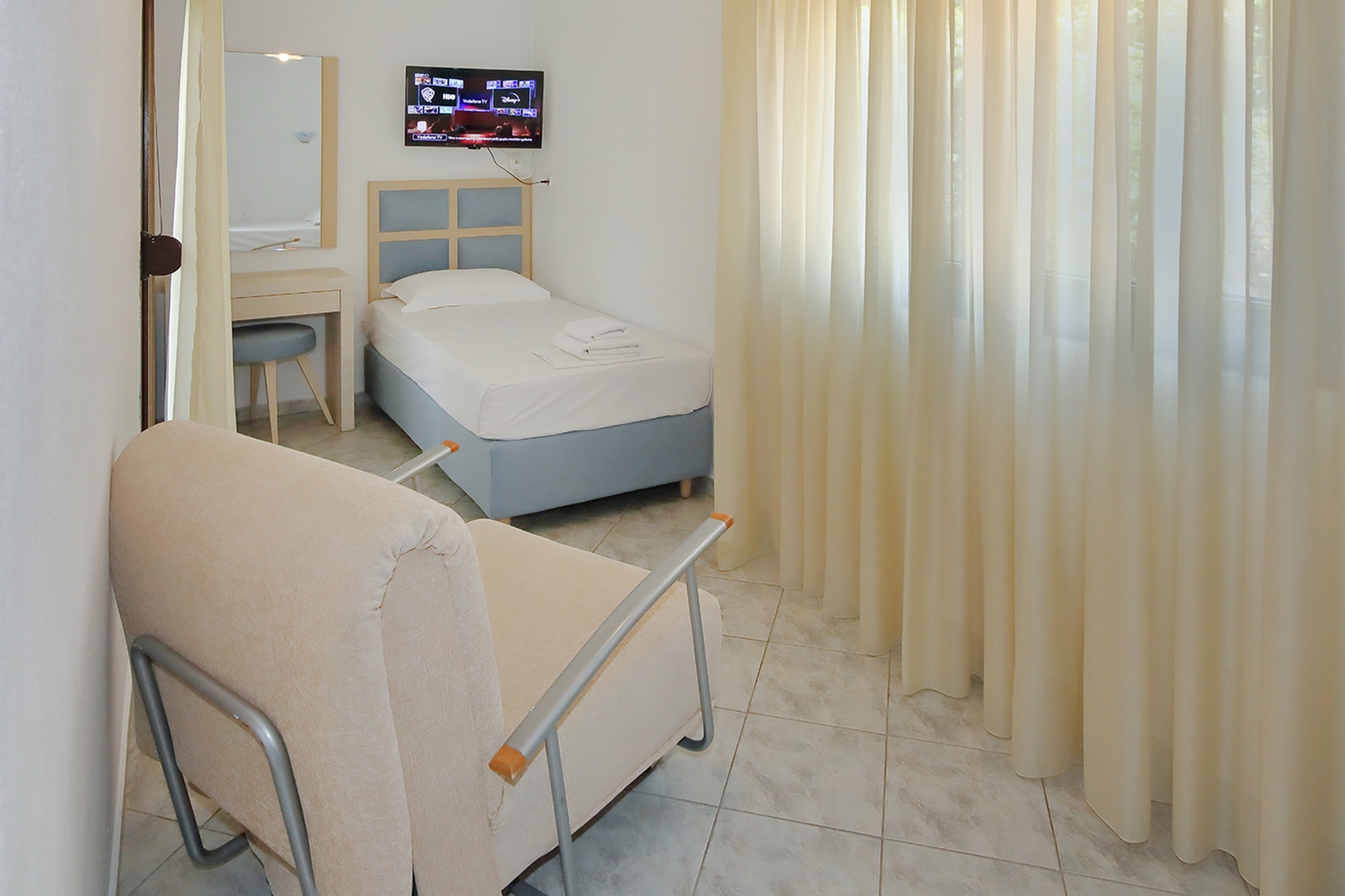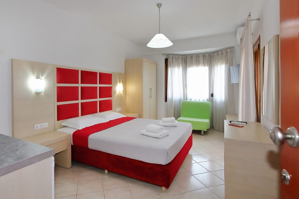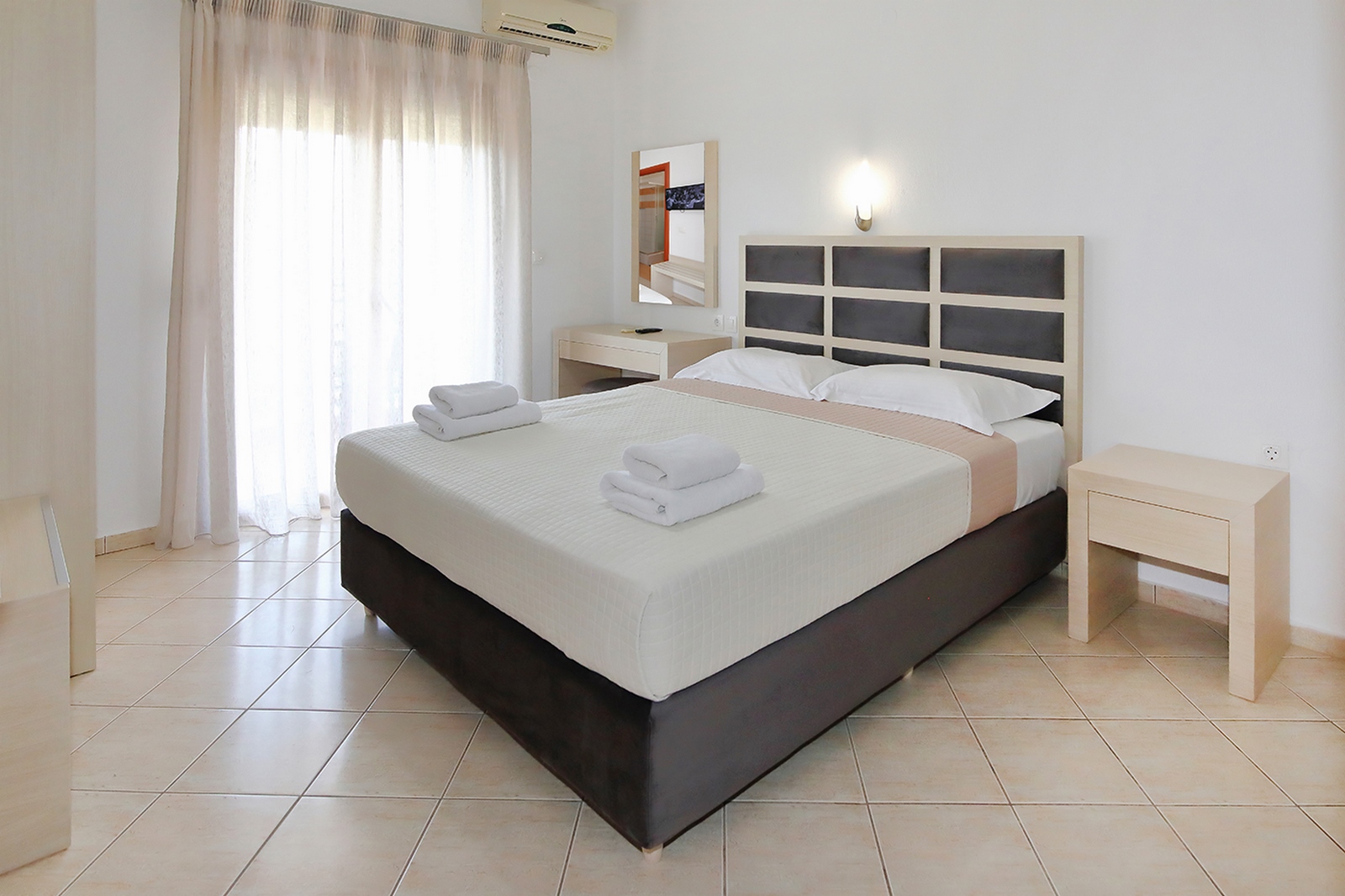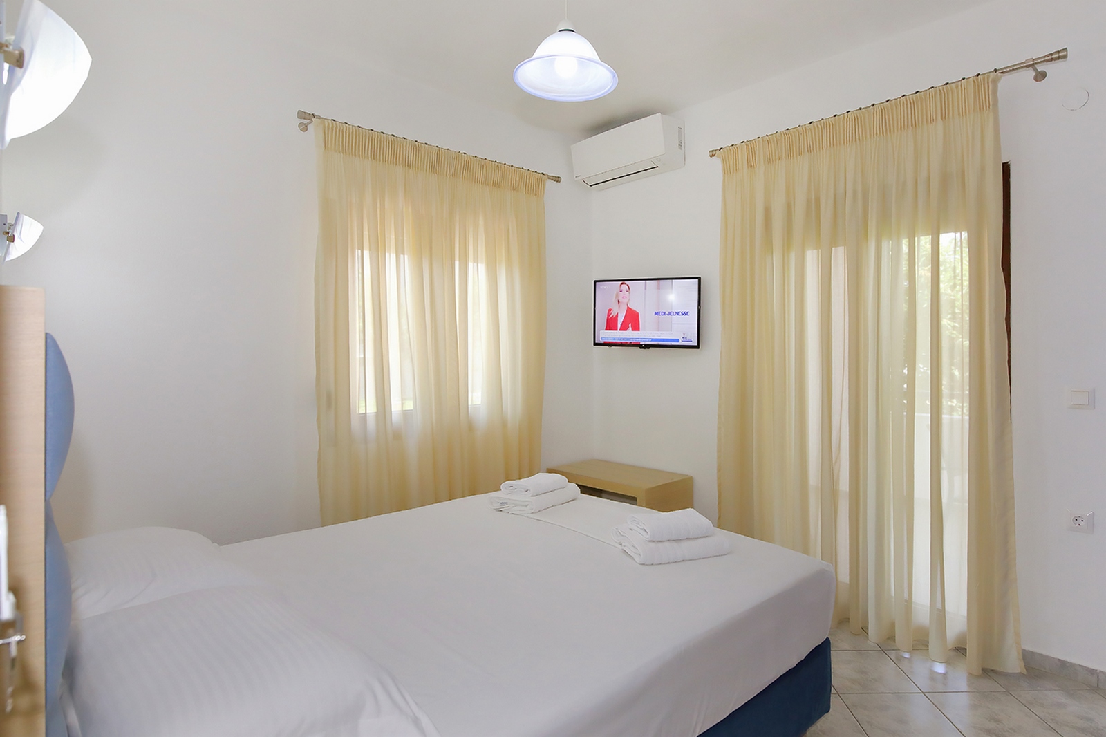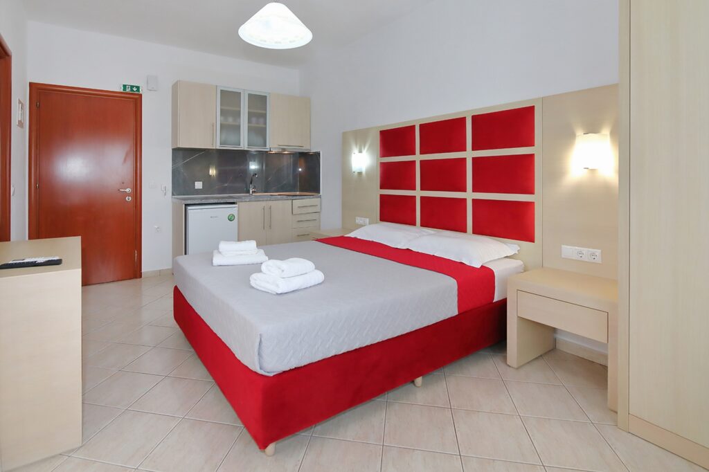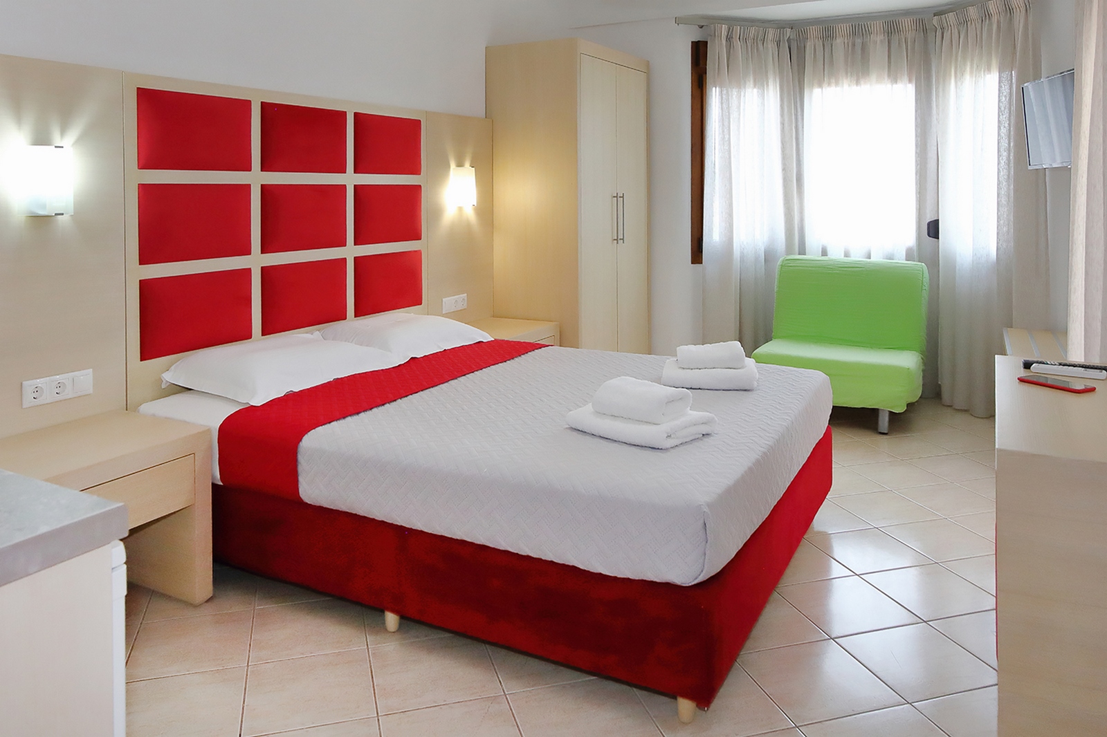The modern complex “STUDIOS ANNIO” is located near the tourist center of Nikiti, 100 meters from the sandy beach. Surrounded by a beautiful garden with lawn, flowers, trees, a gazebo with barbecue and private parking. It has 8 studios and 1 two-room apartment that can accommodate up to 4 people and there is the possibility of extra bed upon request. All of our apartments are decorated with modern stylish furniture and fully equipped to ensure a comfortable stay.
