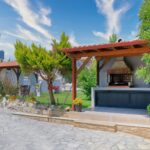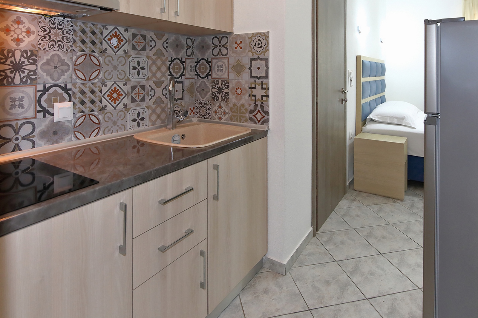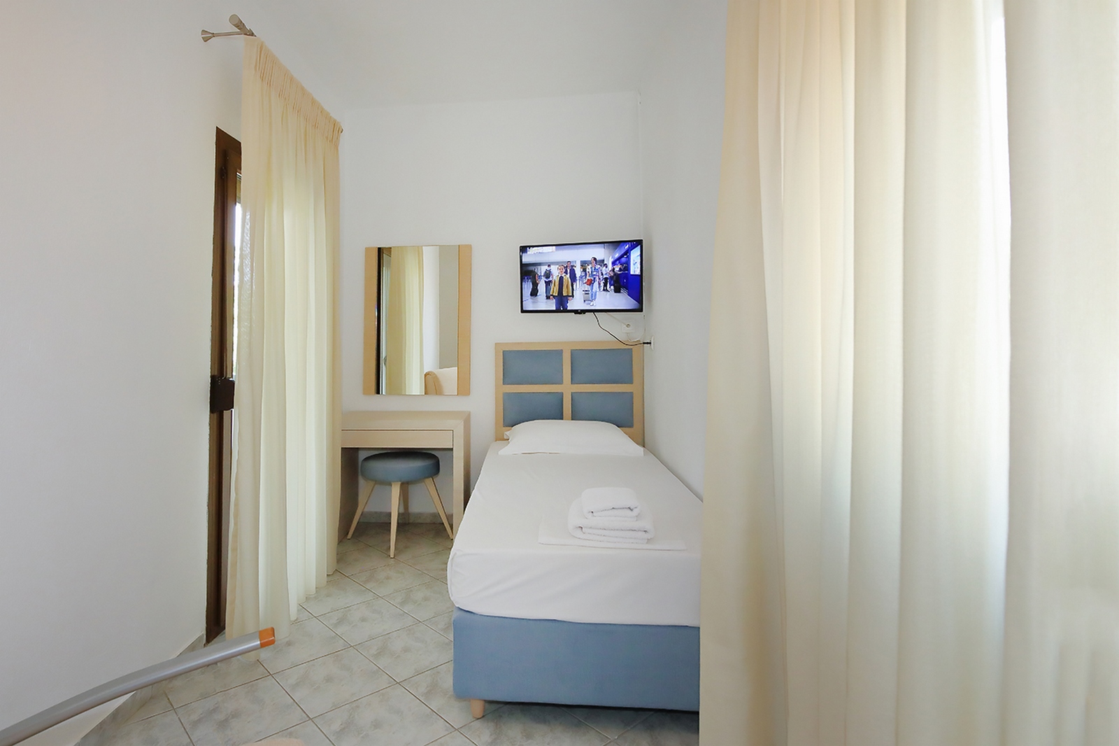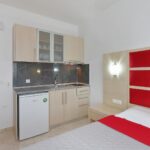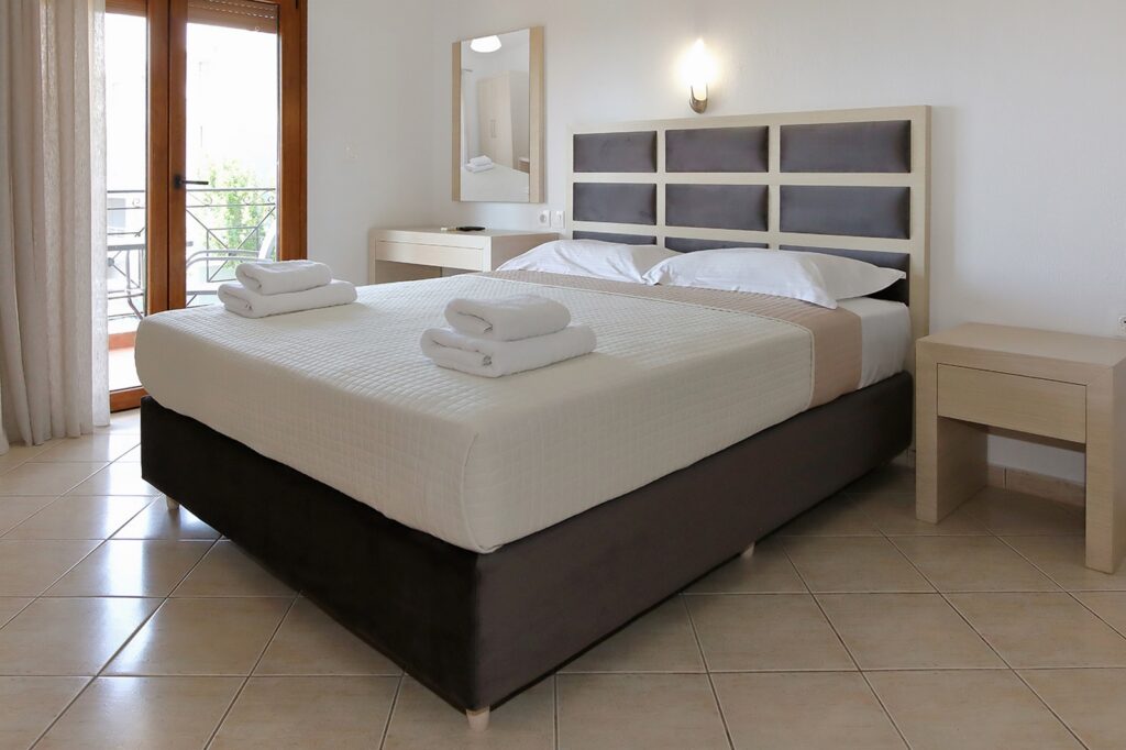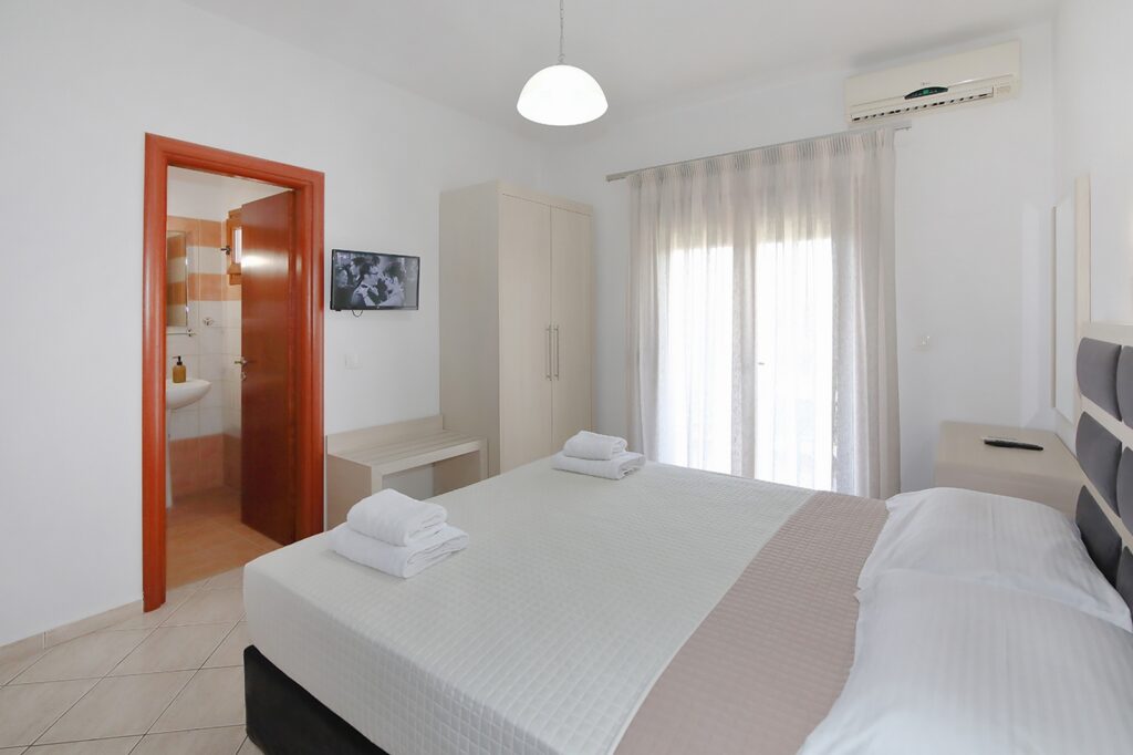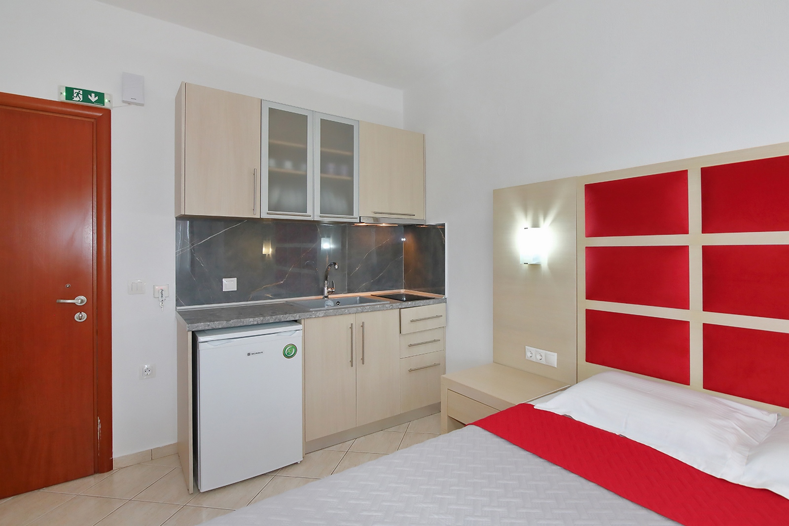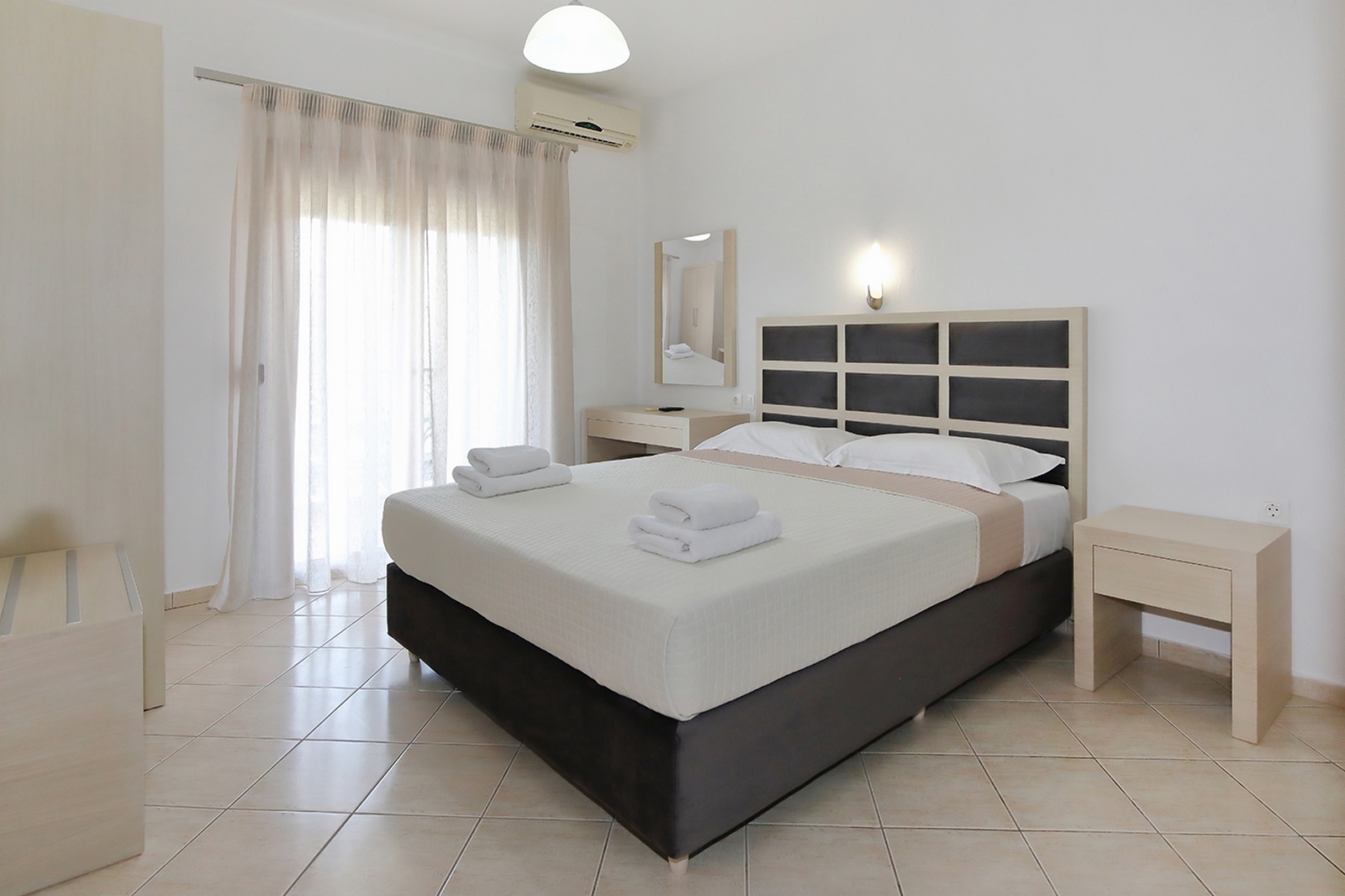 The modern complex “STUDIOS ANNIO” is located near the tourist center of Nikiti, 100 meters from the sandy beach. Surrounded by a beautiful garden with lawn, flowers, trees, a gazebo with barbecue and private parking. It has 8 studios and 1 two-room apartment that can accommodate up to 4 people and there is the possibility of extra bed upon request. All of our apartments are decorated with modern stylish furniture and fully equipped to ensure a comfortable stay.